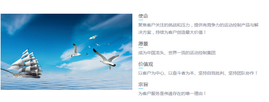 “成就客戶”明確了所有雷賽人的偉大責(zé)任。幫助國(guó)內(nèi)外自動(dòng)化設(shè)備行業(yè)的廣大客戶,發(fā)掘和滿足他們的運(yùn)動(dòng)控制需求,實(shí)現(xiàn)他們的設(shè)備目標(biāo)和企業(yè)夢(mèng)想。偉通機(jī)電人堅(jiān)持以客戶為中心,快速響應(yīng)客戶需求,為客戶提供優(yōu)質(zhì)、及時(shí)、相對(duì)低成本的產(chǎn)品和服務(wù),持續(xù)為客戶創(chuàng)造長(zhǎng)期價(jià)值進(jìn)而成就客戶。成就客戶是成就偉通、成就偉通人才的唯一途徑。